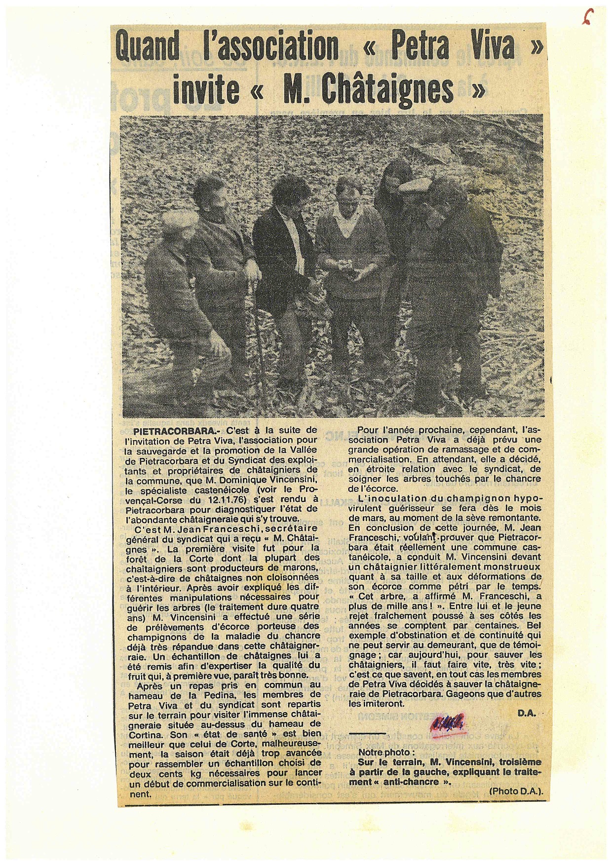 Traitement des châtaigniers atteints par la maladie du « chancre de l’écorce » (1977).