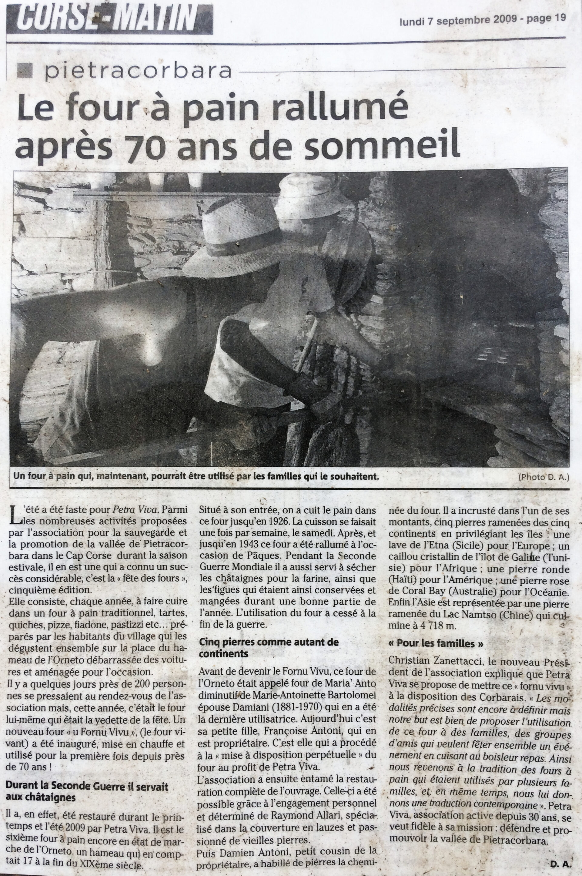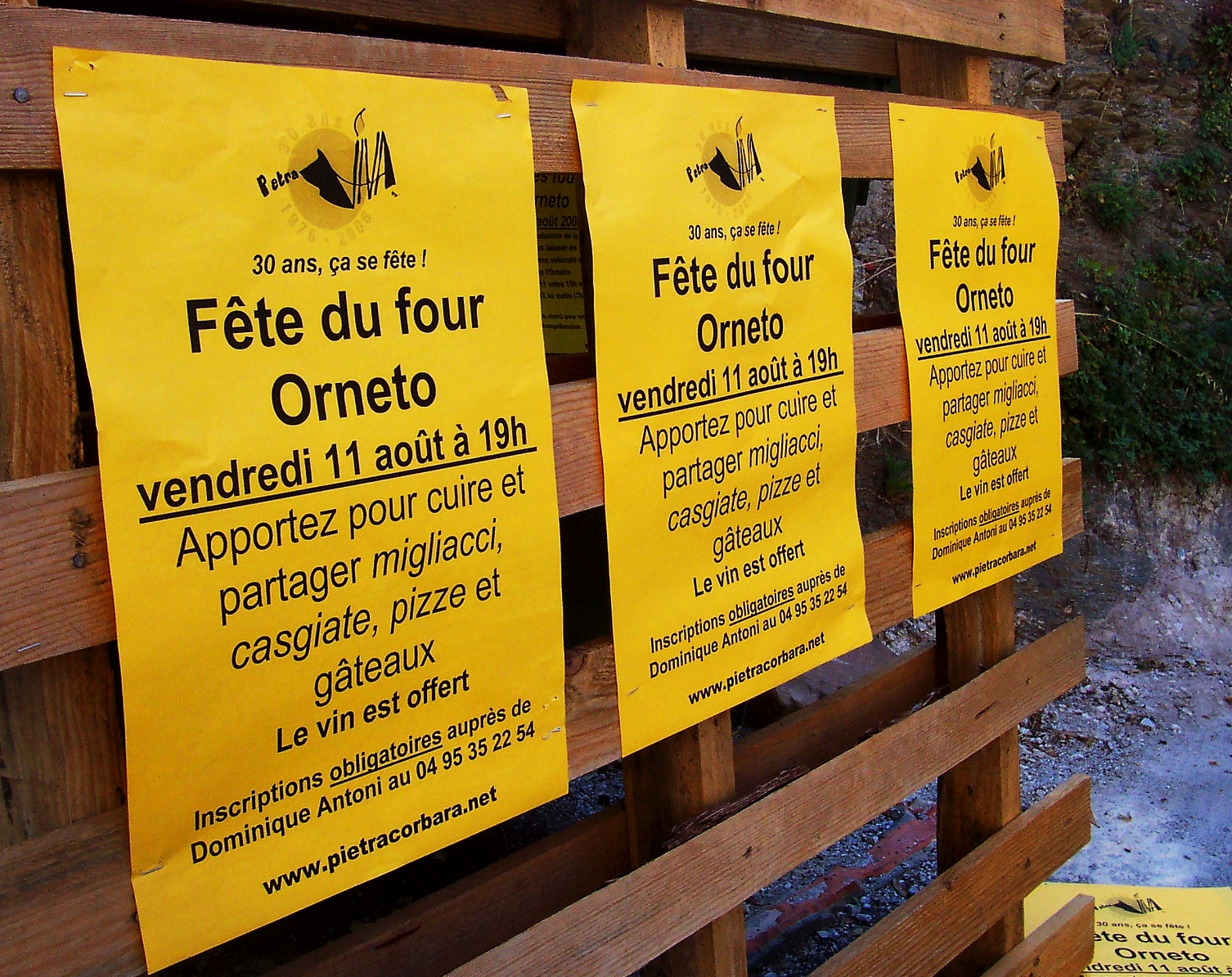 Depuis 2009, Petra Viva met en chauffe ce four une fois par an pour sa traditionnelle « fête des fours » qui rassemble, au début du mois d’août, les Corbarais permanents et ceux viennent y passer leurs vacances. Chaque famille apporte une ou plusieurs pâtisseries à cuire au feu de bois. Les pâtisseries salées (casgiate, migliacci, pizze, etc.) ou sucrées sont ensuite partagées entre les participants.