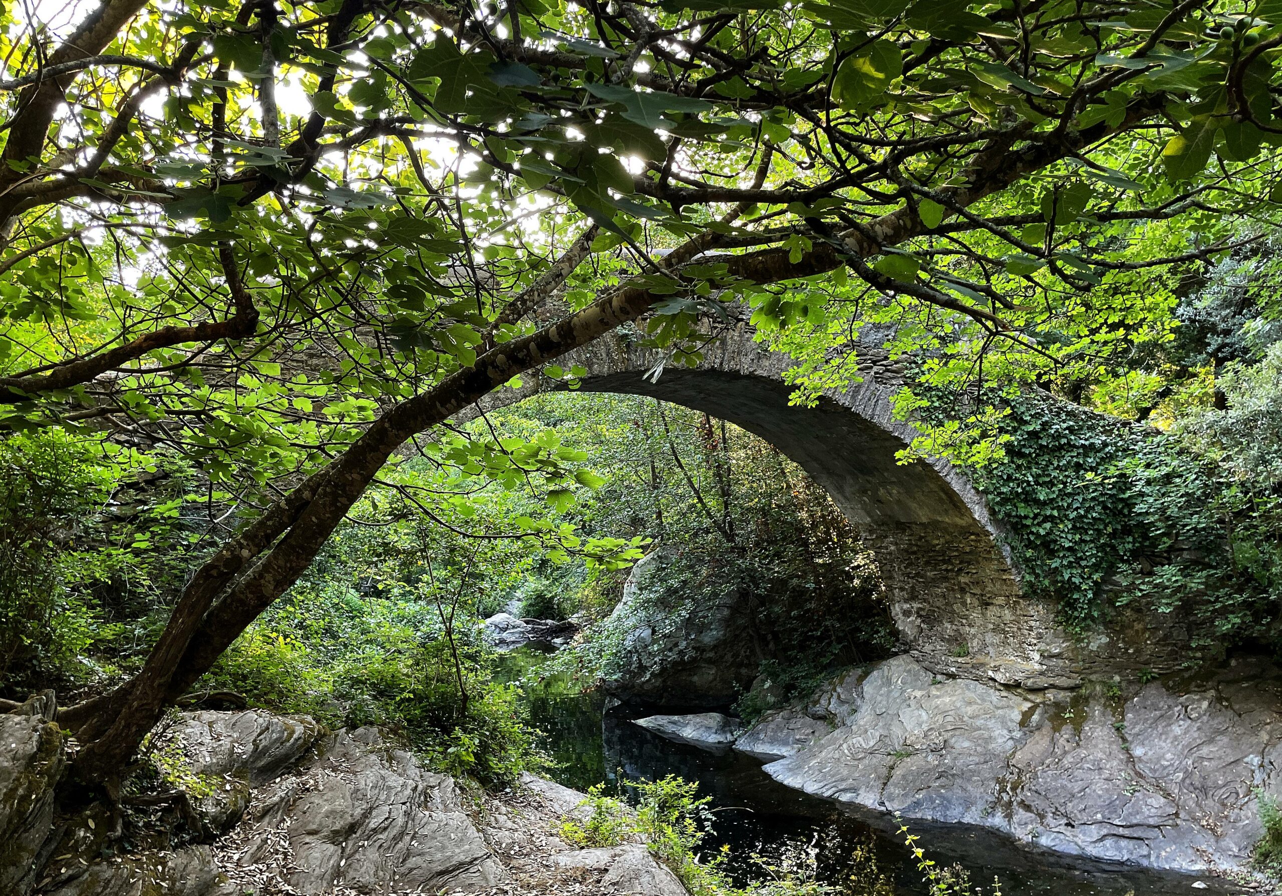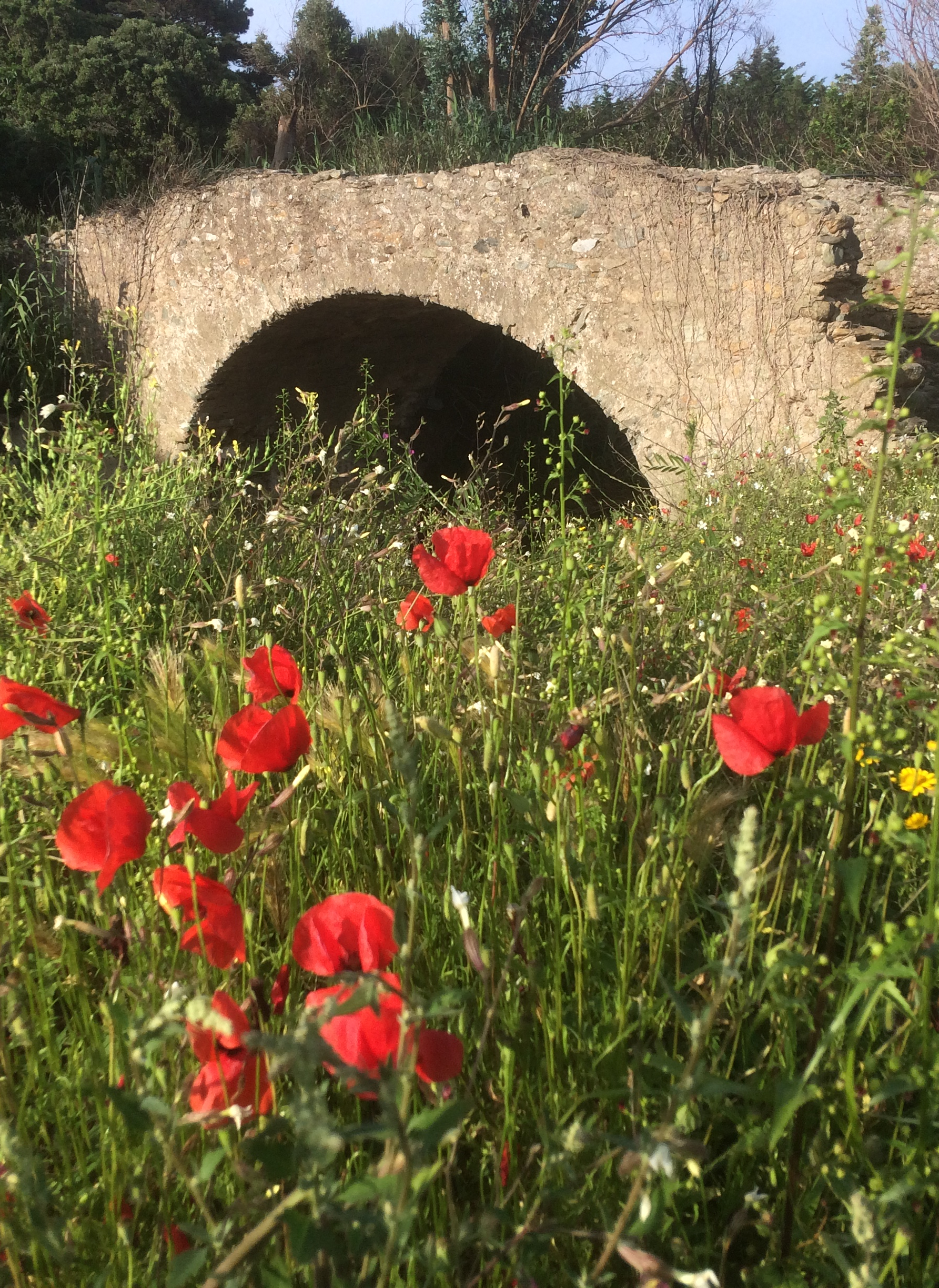 Nous sommes ici sous l’auvent d’une écurie, près d’un pont génois et d’une fontaine, au bord d’un chemin empierré – a strada vecchja (l’ancienne route) – qui conduisait à la marine de Pietracorbara.