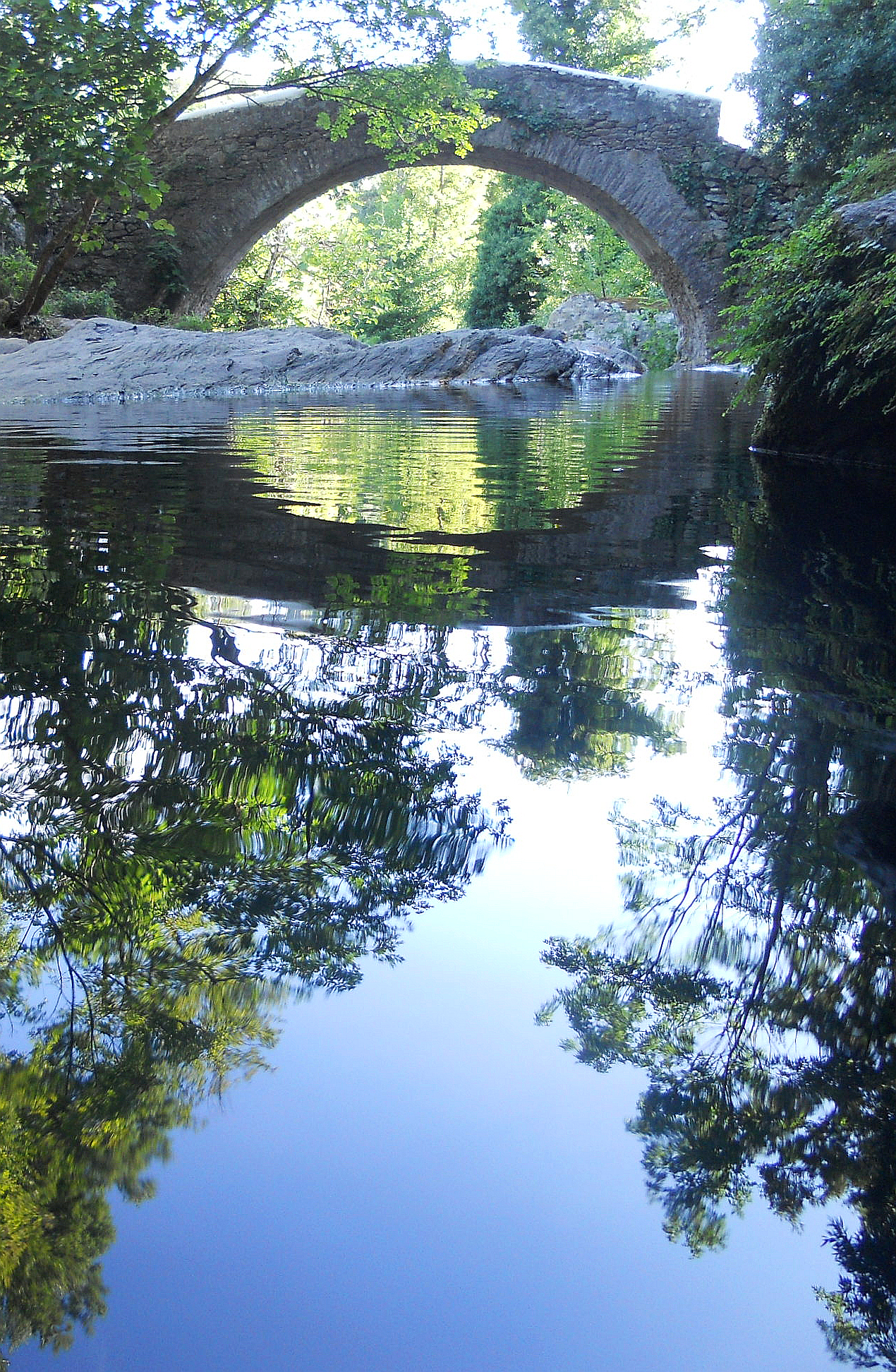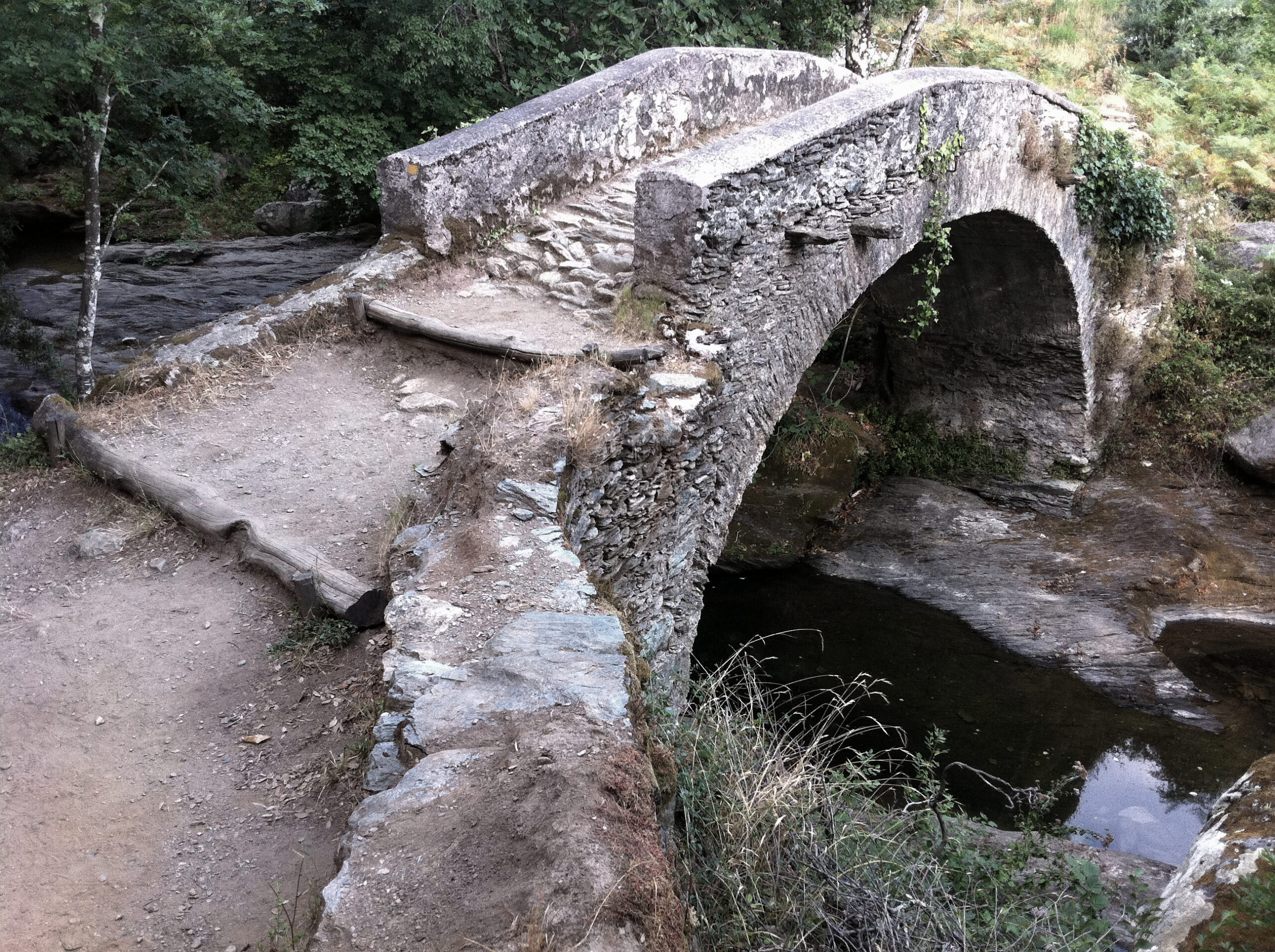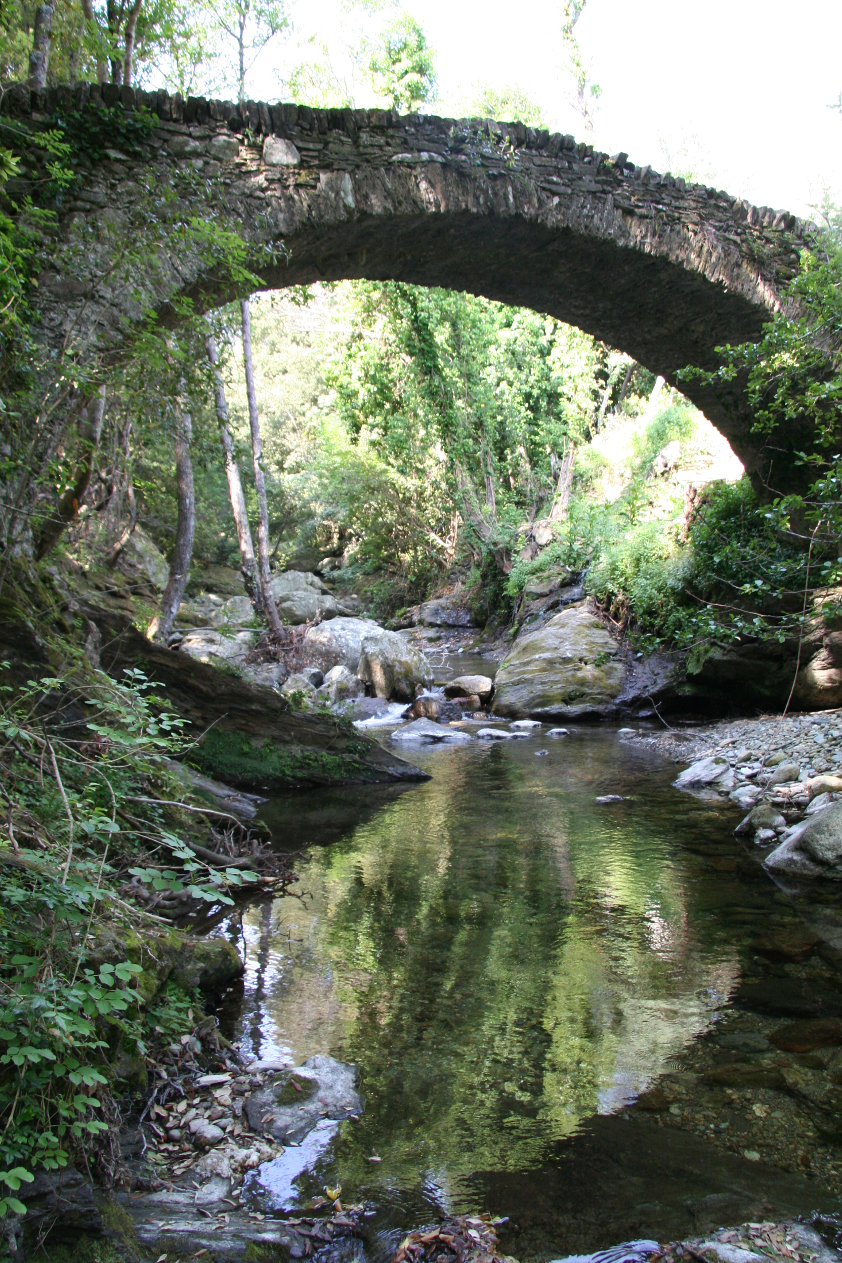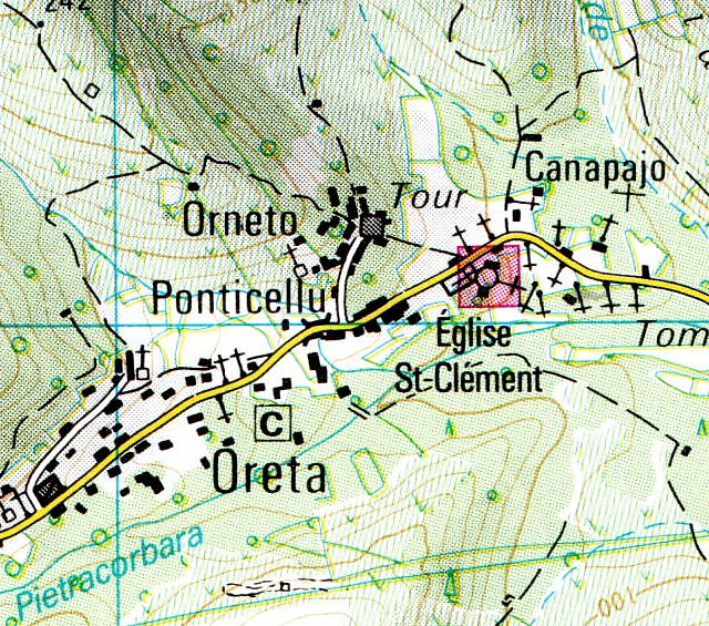 Le pont tout d’abord, appelé le petit pont – u ponticellu – pourrait dater de la première moitié du XVIIe siècle, période durant laquelle la Corse était génoise, d’où l’appellation courante de ce type de ponts désignés comme des « ponts génois ». Un acte notarié cite le pont dès 1644. Il figure sur l’ancien cadastre de 1860. Il est situé sur l’axe de passage entre Bastia, Sisco (au hameau de Croscianu) et, plus au nord, Cagnano par le col de San Roccu. Le pont possède une arche unique, voûtée en berceau, joliment appareillée en claveaux de schiste. Son tablier est en dos d’âne recouvert d’une calade aux pierres usées par le temps, le pas des hommes et le sabot des mulets. La vallée de Pietracorbara compte deux autres ponts de ce type, celui du Quercetu situé dans la plaine et celui du Guadubughju plus haut dans la vallée, non loin du hameau de Selmacce. Des trois ponts, celui du Ponticellu est le plus racé avec son audacieuse courbure. Il relie les deux rives encaissées du fiume (le fleuve).