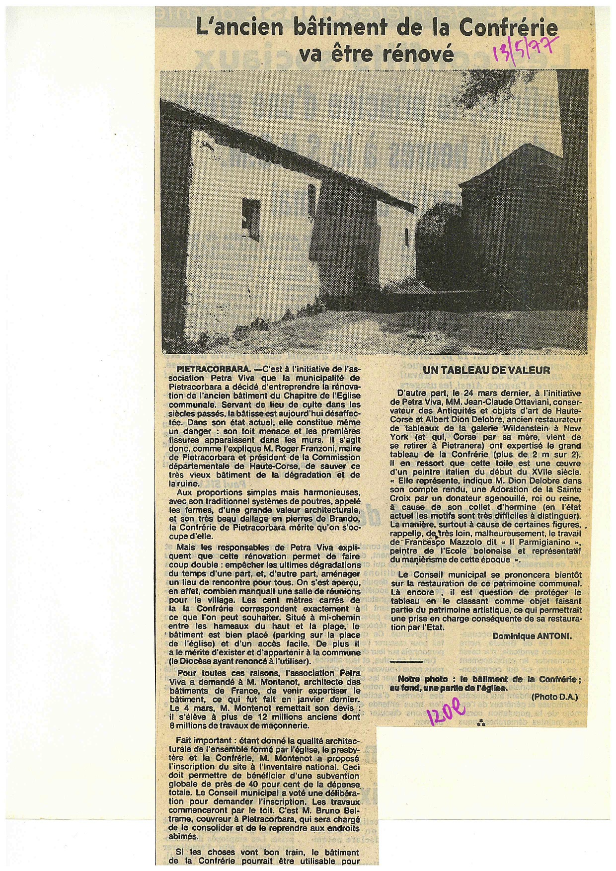 ► Participation à la rénovation du bâtiment de l’ancienne confrérie transformé en salle des fêtes (1978).