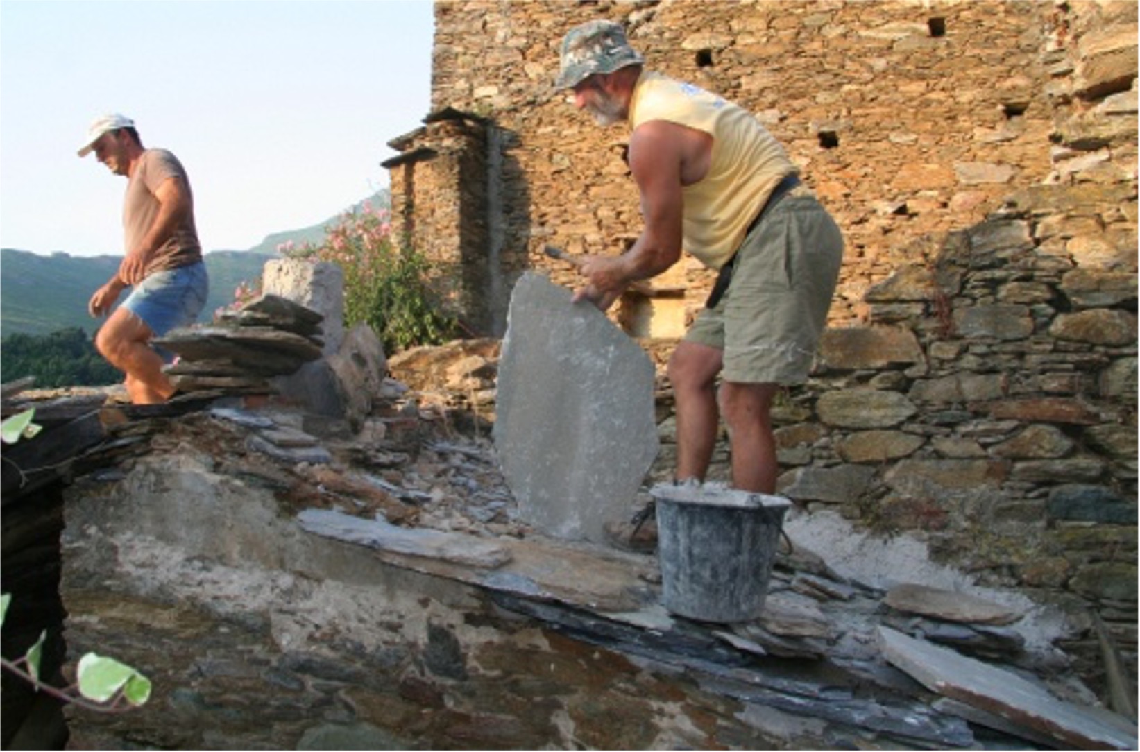 ► Restauration d’une aire à battre le grain au-dessus de la rivière, au lieu-dit Guadubughju (2012).