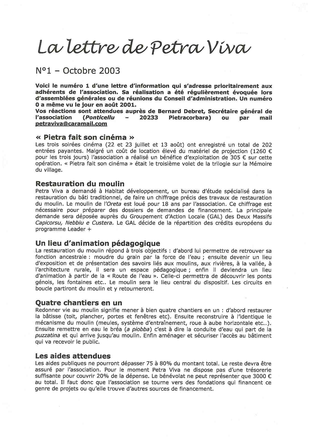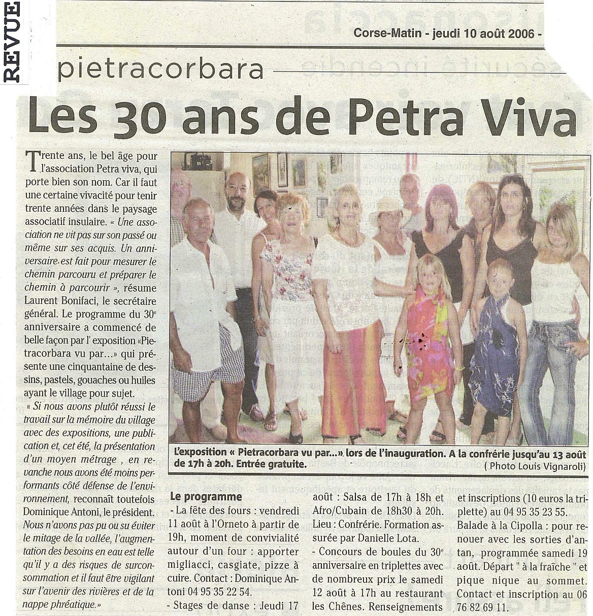 Petra Viva a réalisé de très nombreuses actions au cours de ses 50 années d’existence. Nous avons retenu ici les initiatives les plus importantes en matière de VALORISATION. Elles s’inscrivent dans les cinquante actions les plus marquantes qui, pour certaines, ont eu un effet non négligeable concernant l’environnement (la plage, les sentiers) et la restauration du patrimoine bâti (les ponts, les fontaines). De même, les initiatives relatives à l’animation du village (fêtes, expositions, concerts) ont été largement relayées par une communication offensive (presse écrite et audiovisuelle, site internet, réseaux sociaux). Tous ces éléments ont participé à la valorisation de la vallée de Pietracorbara.