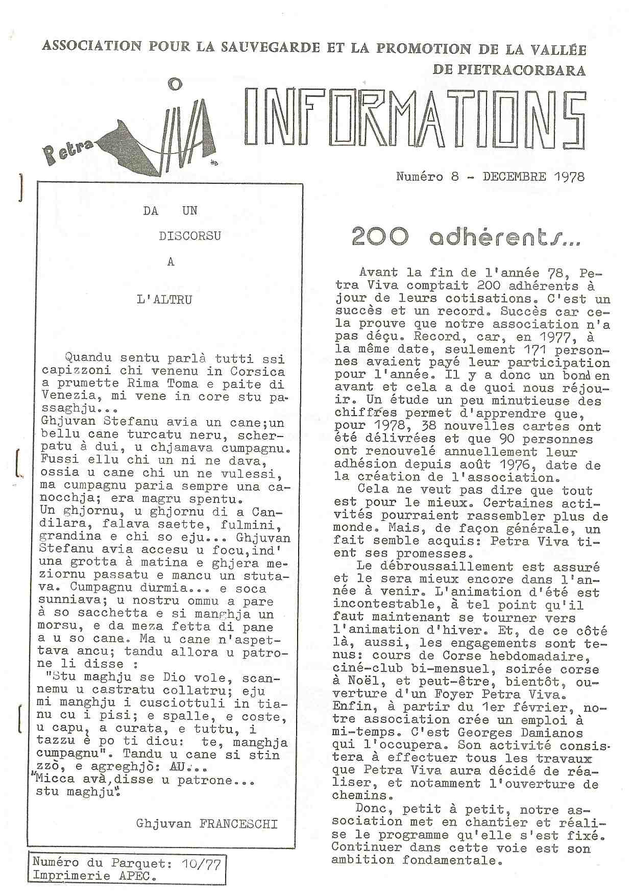 ► Rédaction, impression et diffusion pendant six ans (1977-1983) de Petra Viva Informations, le journal trimestriel de l’association.