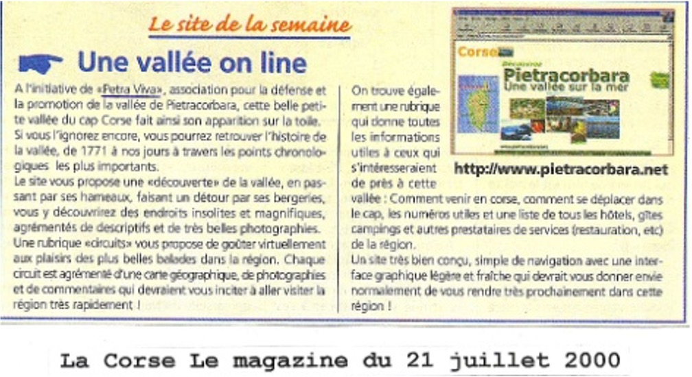 ► Réalisation d’un site internet de l’association pietracorbara.net (2000) régulièrement actualisé.