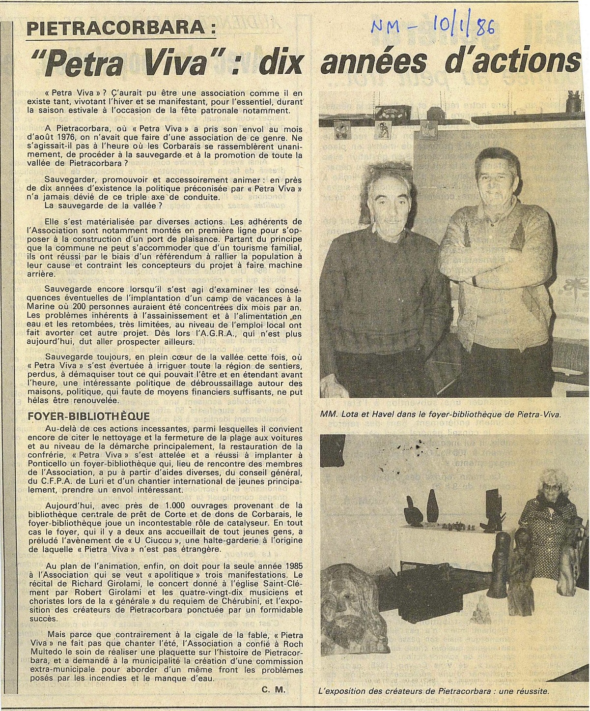 ► Rédaction de communiqués et d’articles de presse pour la presse écrite locale (Corse-Matin, Le Provençal-Corse, Kyrn, etc.) et nationale (Le Figaro). Présence dans les médias audio-visuels – ICI-RCFM, France 3 Corse, etc. (dès 1976).